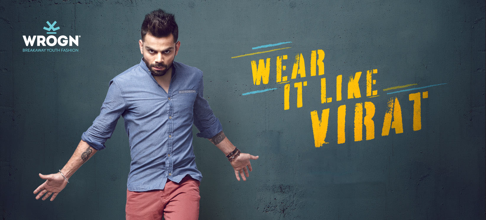 Wrogn was co-created with Virat Kohli, India’s cricketing hero and among the world’s biggest sporting icons. With its breakaway youth fashion and razor-sharp attitude, Wrogn has become a mainstay in the wardrobe of young Indian men.